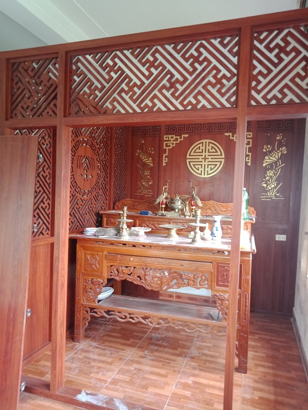 Vách ngăn phòng thờ gỗ công nghiệp tại Vinh được dùng cho cả các căn hộ chung cư và trang trí cho phòng thờ riêng. Nó không chỉ phân cách được không gian giữa nơi thờ cúng linh thiêng cần sự yên tĩnh với những không gian khác trong gia đình, mà còn là một vât trang trí nội thất có tính thẩm mỹ cao làm cho không gian gia đình thêm đầm ấm. .Nếu nhà bạn có diện tích không được rộng và chưa có phòng thờ riêng thì dùng vách ngăn cho ban thờ là giải pháp hoàn hảo.